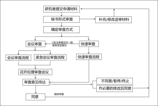 伦理审查会议:一般每月召开审查会议1次,需要时可以增减审查会议次数。请在会议审查前提交送审文件。研究过程中出现重大或严重问题,危及受试者安全时,或发生其它需要伦理委员会召开会议进行紧急审查和决定的情况,伦理委员会将召开紧急会议进行审查。